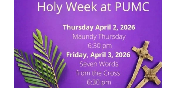 Maundy Thursday will take us to the Last Supper and the arrest and "trial" of Jesus. Good Friday we will hear Jesus' "Seven Words" speaking from tthe cross.